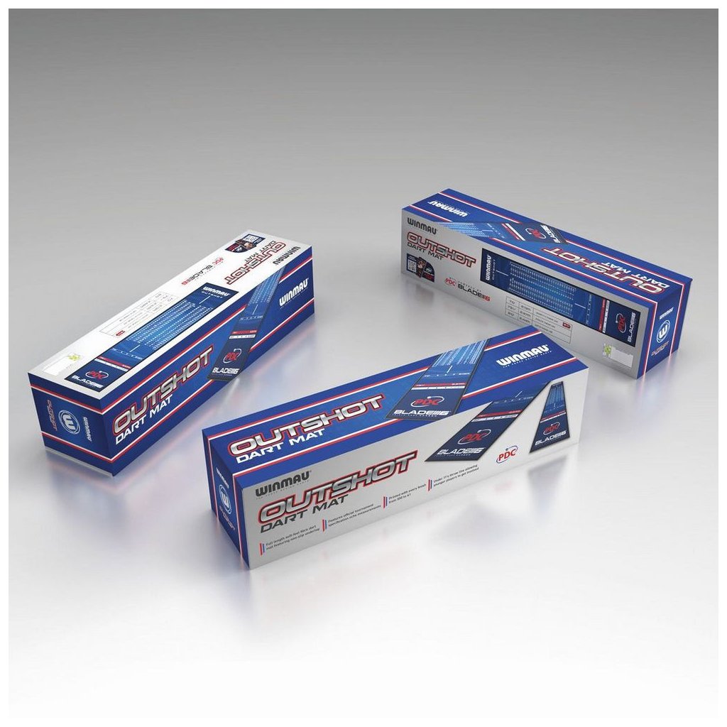 Gumový koberec Outshot je ideální pro ochranu podlahy a šipek. Obsahuje hranici hodu a výstupní hodnoty pro lepší hru.